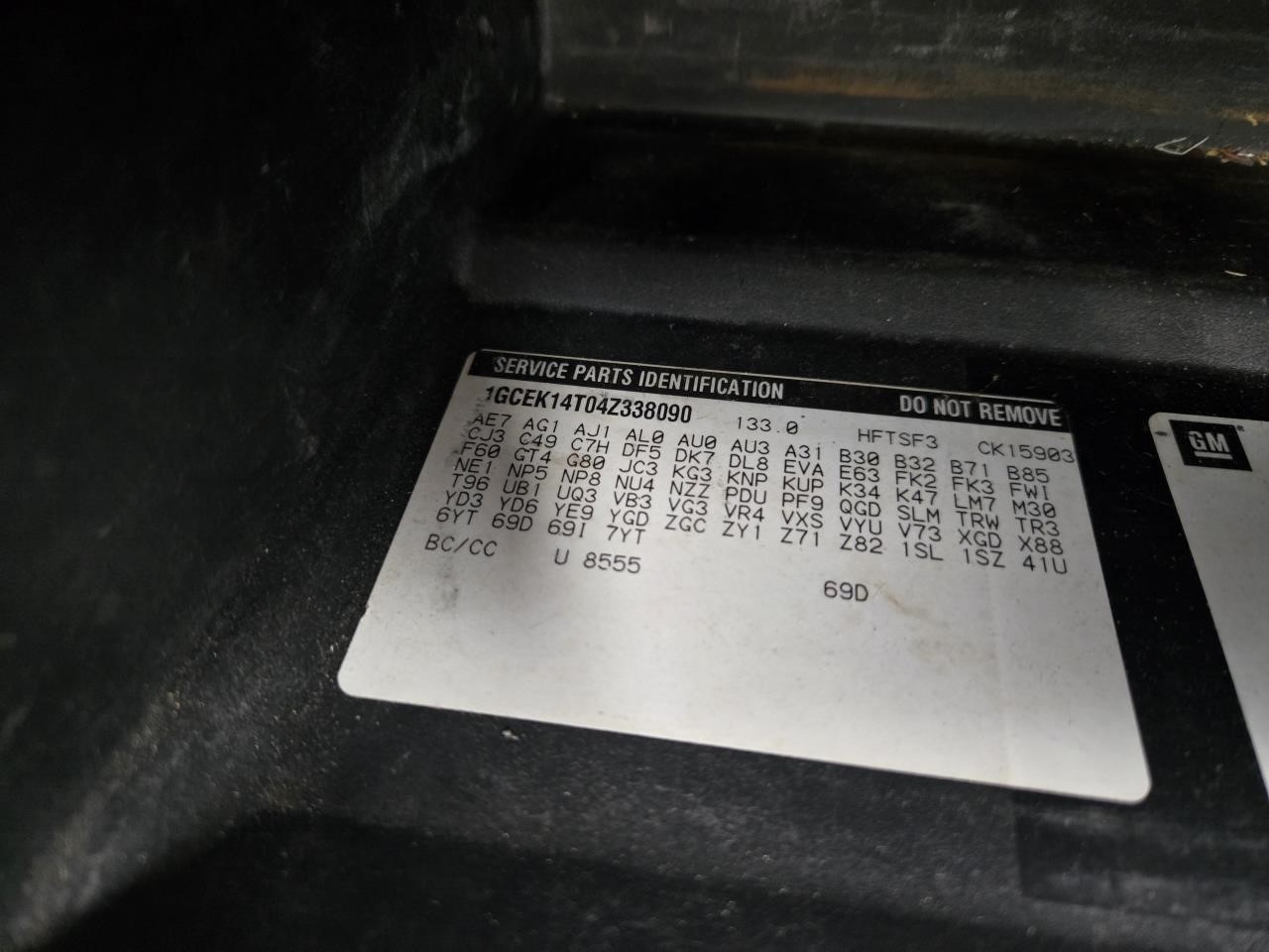 Stock Number: 008792-14VIN: 1GCEK14T04Z338090Mileage: 88248SKU/R Number: R00452546Part Number: 15909834